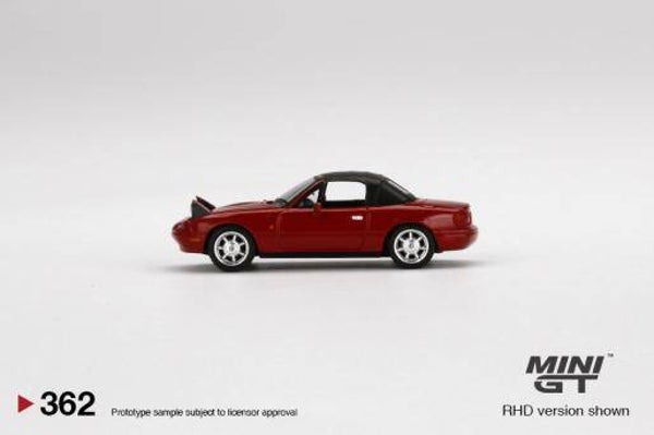 MINI GT MAZDA EUNOS ROADSTER CLASSIC RED HEADLIGHTS UP SOFT TOP R.H.D