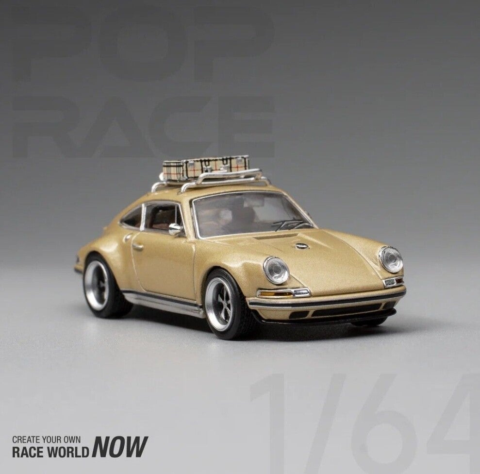 POP RACE 1/64 SINGER 911 GOLD WITH ROOFRACK AND LUGGAGE
