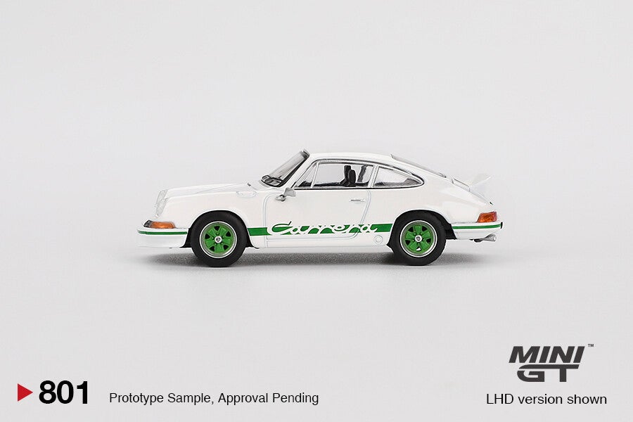 MINI GT 1/64 PORSCHE 911 CARRERA RS 2.7 GRAND PRIX WHITE AND GREEN R.H.D