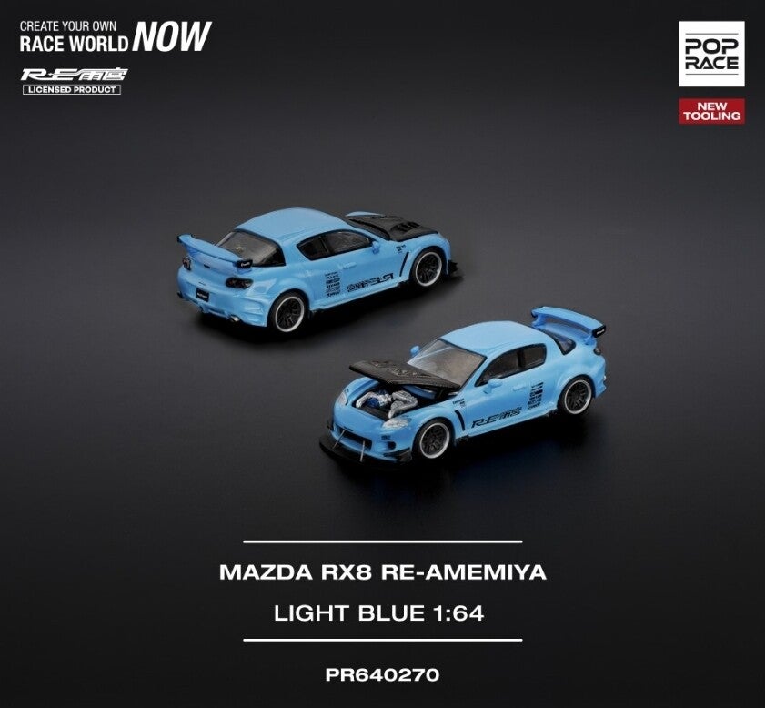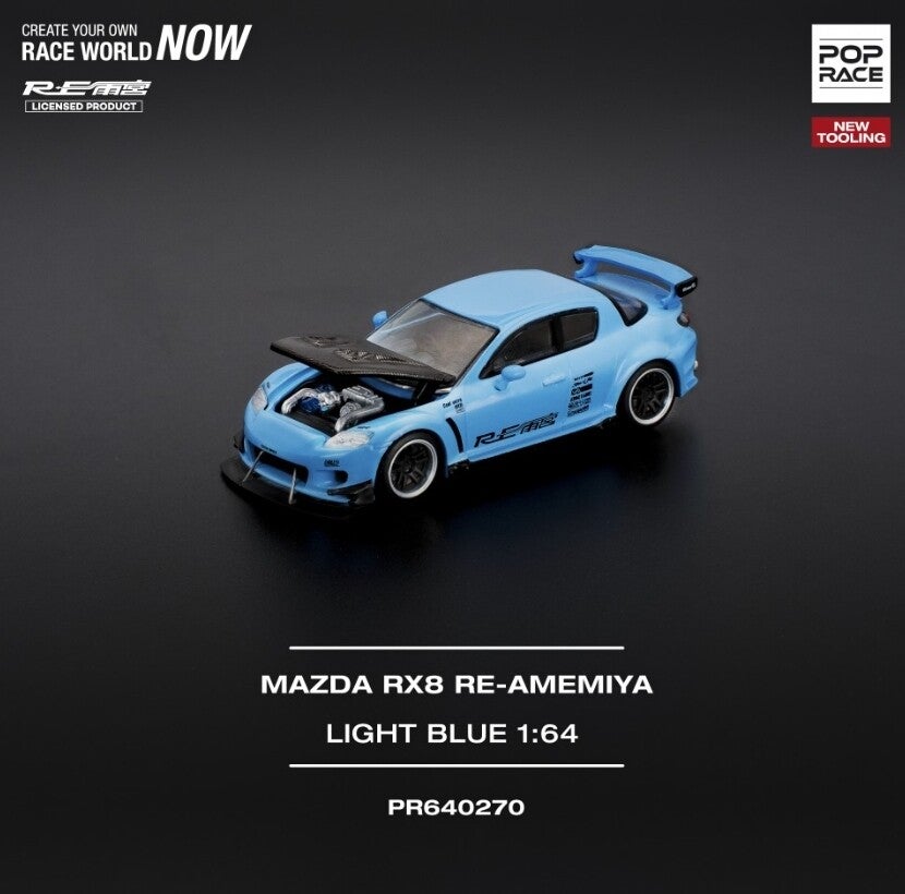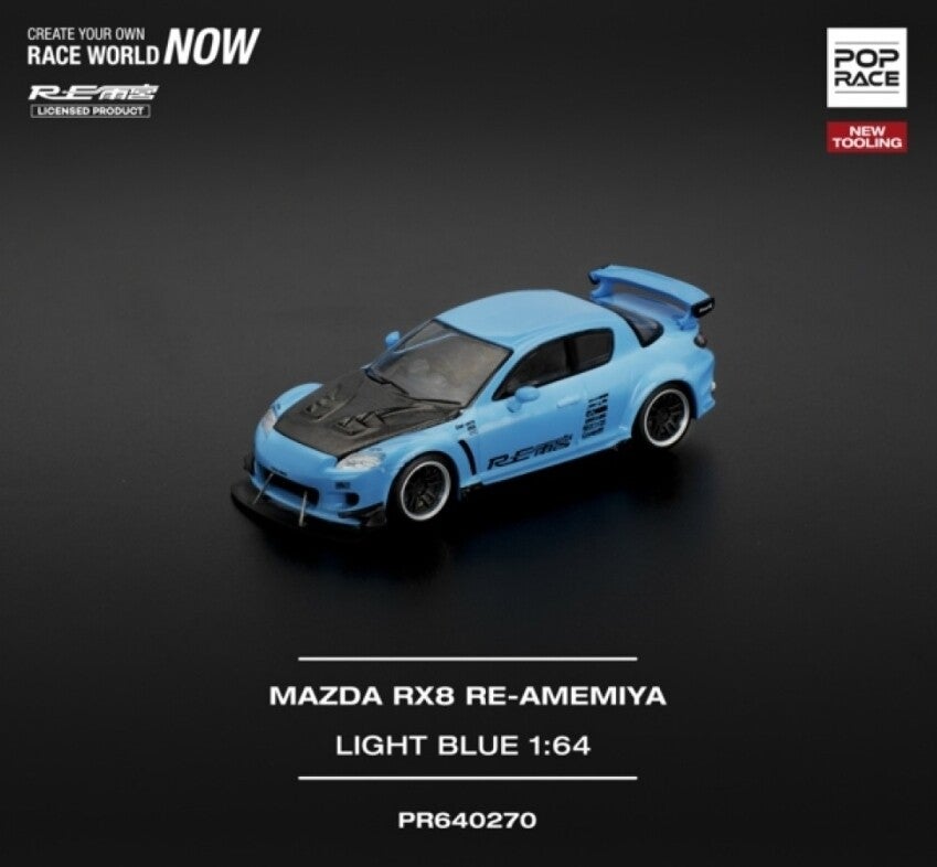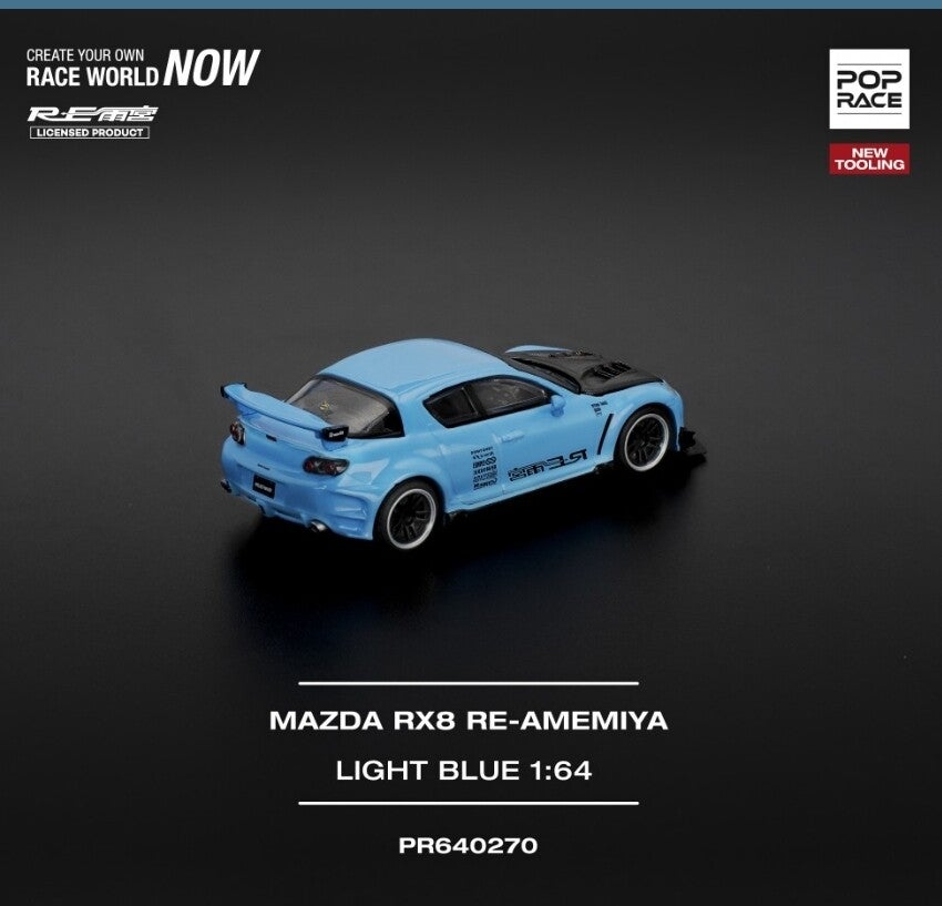 POP RACE 1/64 MAZDA RX-8 RE-AMEMIYA LIGHT BLUE